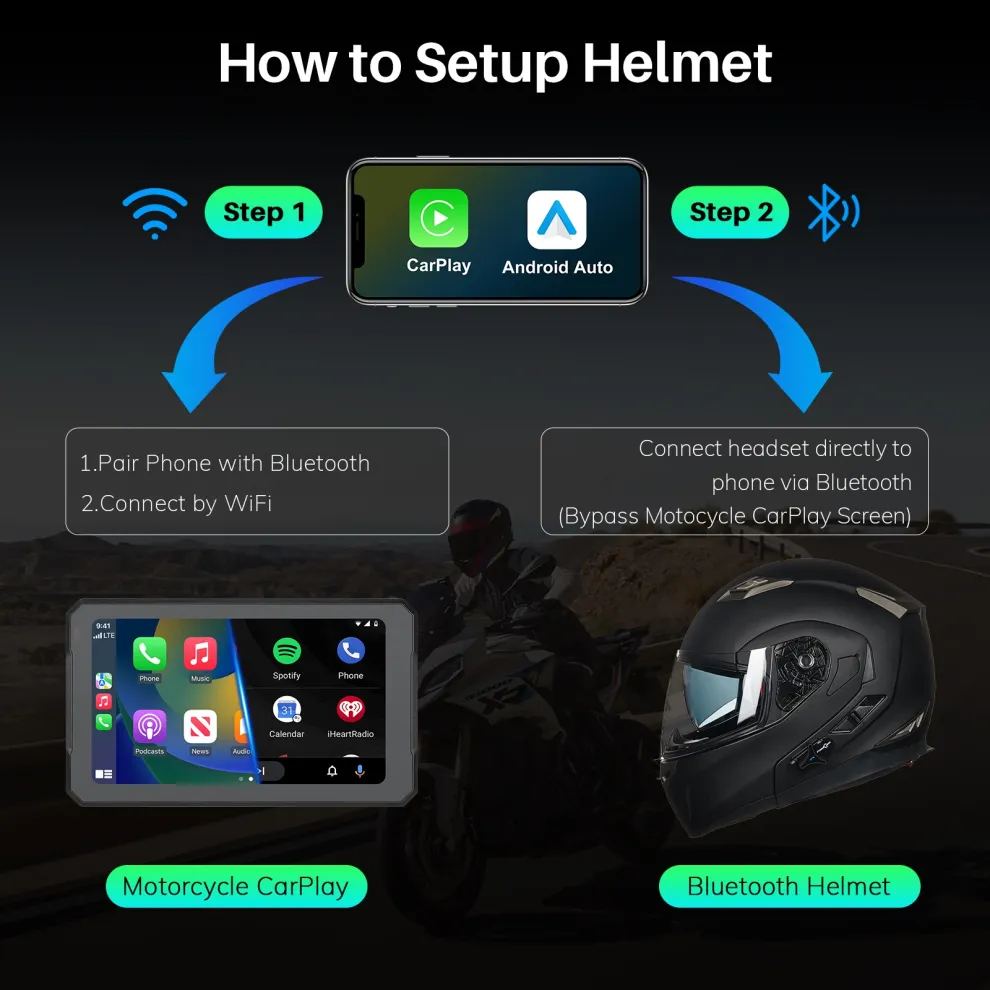The 7 Inch BMW Moto Stereo is not just a functional addition but a significant upgrade in enhancing your riding experience. Featuring wireless CarPlay and Android Auto functionality, it provides seamless access to your favorite apps, music, and navigation tools without the hassle of wires. Dual Bluetooth connectivity allows you to pair the unit with both your smartphone and Bluetooth-enabled headset or helmet simultaneously. This unique feature ensures hands-free communication and music streaming on the go, adding safety and convenience to your rides. Its music-sharing feature allows you and your passenger to enjoy the same playlist without interruptions, creating a more immersive travel experience. The 7-inch display on this best motorcycle stereo ensures excellent visibility, even in direct sunlight, with responsive touch controls for easy use. Designed to handle tough conditions, its IP67 waterproof rating guarantees durability in any weather. Whether you're cruising in the rain or under the scorching sun, this stereo delivers top-notch performance.